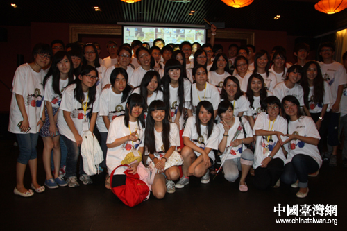7月19日晚,“情漫海峽·愛聚兩岸”兩岸學生聯歡會在北京舉行。圖為來自臺灣青年學生大陸參訪團的學生。(中國臺灣網 孟雅詩 攝)