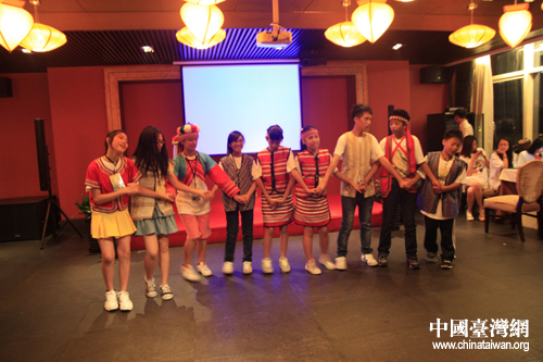 來自臺灣的原住民小朋友表演歌舞《我們是一家人》。(中國臺灣網 孟雅詩 攝)