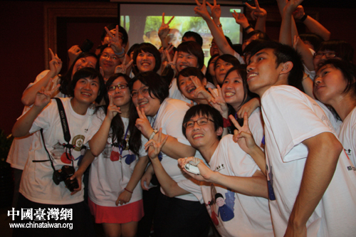 聯歡會結束,兩岸學生開心的合影留念。(中國臺灣網 孟雅詩 攝)