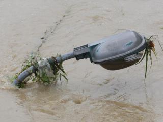 臺風(fēng)蘇拉襲臺帶來豐沛降雨,景美河濱公園水位一度高過路燈。圖片來自臺灣“中央社”