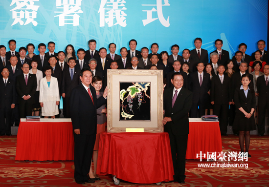 8月9日下午,海峽兩岸關系協會會長陳云林與臺灣海峽交流基金會董事長江丙坤在臺北共同簽署了《海峽兩岸投資保護和促進協議》與《海峽兩岸海關合作協議》。(中國臺灣網 田云鵬 攝)