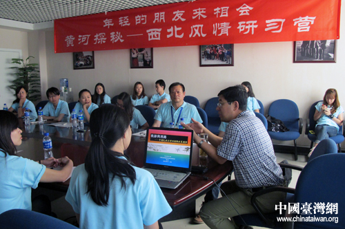 中央民族大學嚴慶教授與兩岸學子進行熱烈的交流探討。(中國臺灣網 張潔 攝)