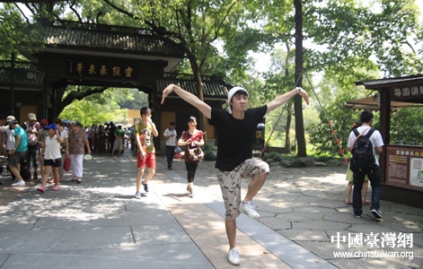 來自臺北大學的林欣翰飛來峰里耍寶搞怪。(中國臺灣網 孟雅詩 攝) 第1頁第2頁第3頁第4頁