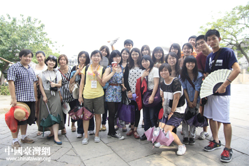 8月13日,由宋慶齡基金會和臺灣“十大杰出青年基金會”共同組織的“臺灣青年學(xué)生交流團”一行游覽蘇州,圖為團員在同里古鎮(zhèn)合影留念。(中國臺灣網(wǎng) 孟雅詩 攝)