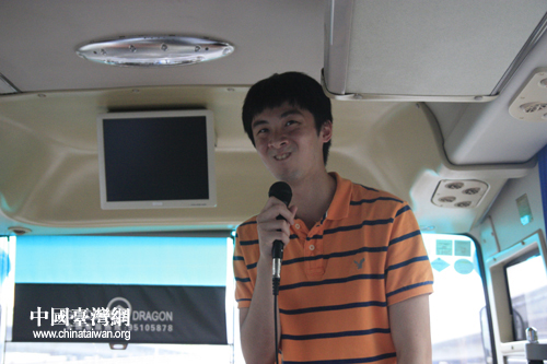 到達景區后,乘坐觀光車前往同里古鎮,個個都按捺不住激動的心情。(中國臺灣網 孟雅詩 攝)