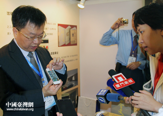 王志文現(xiàn)場(chǎng)演示“搶鮮機(jī)”。(中國(guó)臺(tái)灣網(wǎng) 王思羽 攝)