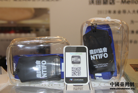 臺(tái)灣農(nóng)訓(xùn)協(xié)會(huì)精心制作的“搶鮮機(jī)”宣傳卡,只需用手機(jī)掃描二維碼,即可輕松下載軟件。(中國(guó)臺(tái)灣網(wǎng) 王思羽 攝)