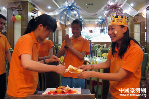 合影留念后,雅婷在另一位臺灣女孩林倖如的幫助下將切好的蛋糕分給大家。一邊吃著蛋糕,雅婷一邊說,“這是我最最難忘的一個生日,真的謝謝大家!”今天的蛋糕,吃起來也格外的香甜。