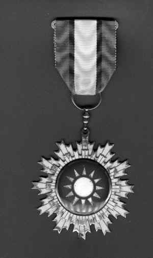 據資深學者?得鳌肚嗵彀兹談渍隆芬粫觯嗵彀兹談渍碌脑O置始于南京國民政府制定的《青天白日章與寶鼎章》條例,青天白日章成為其軍中最高勛章。此章不分等級,凡陸?哲姽僮羰勘⑾伦恐鴳鸸φ,均獲頒之。及后,南京國民政府將其呈送予蔣中正上將,亦即本場拍賣會上推出的這一枚。據書中記載,這是蔣氏最早佩戴的勛章,背面刻有“特壹”二字,實屬獨一無二。但是,斯賓克并沒有介紹收藏了此枚據稱是蔣介石的“青天白日勛章”的這位收藏家,是否是蔣介石的后人,或者是得自蔣家。