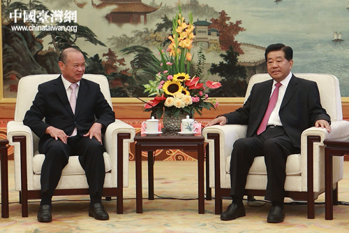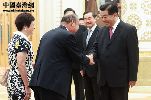 8月30日下午,中共中央政治局常委、全國政協(xié)主席賈慶林在人民大會堂會見了世界臺灣商會聯(lián)合總會參訪團全體成員。(中國臺灣網(wǎng) 陳佳慧 攝)
