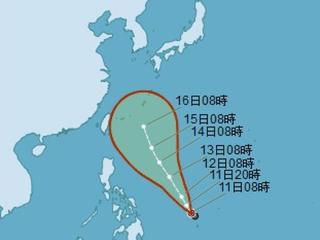 臺灣“氣象局”預估,依目前的行進路徑判斷,到16日時對臺灣會有影響,是否會直撲臺灣?還要再進一步判讀。