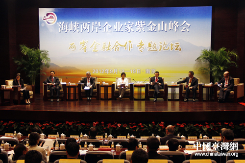 19日下午,“2012海峽兩岸企業家紫金山峰會”兩岸金融合作專題論壇在南京舉行,兩岸金融界學者精英就兩岸金融合作的前景和亟待解決的難題展開討論。(中國臺灣網 于斯文 攝)