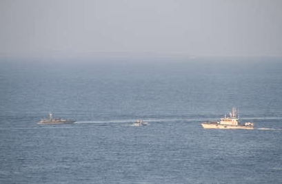 誤闖入射擊區域的小漁船經臺“海巡”艦艇追趕驅離出后,又再折回進入射擊區。臺軍海龍蛙兵的快艇及臺“海巡”艦艇再度驅離。圖片來源:臺灣媒體