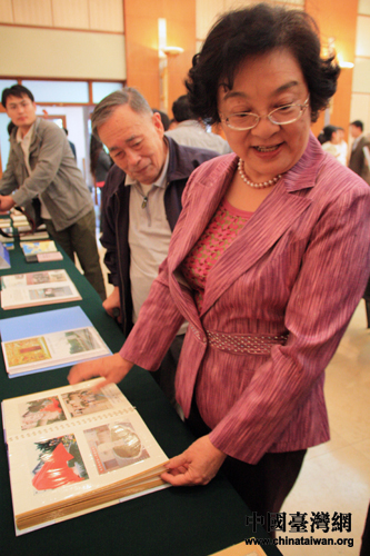 全國政協副主席、臺盟中央主席林文漪和張我軍先生之子、臺盟中央涉臺政策策略咨詢委員會委員何標觀看張我軍先生生平事跡畫冊。(中國臺灣網 王怡然 攝)