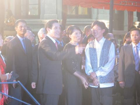 周美青(右三)換穿黑禮服,擺脫“寒酸小氣”的批評。圖片來自臺灣“今日新聞網”