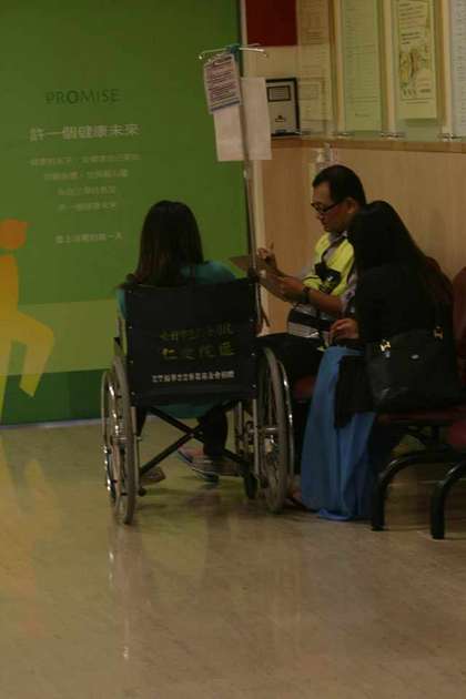 傷者坐在輪椅上。圖片來自臺媒
