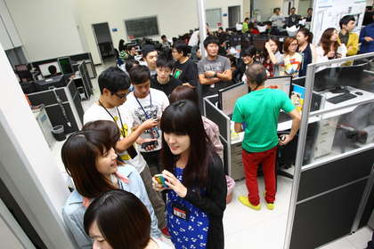 辦公室內(nèi)外大排長(zhǎng)龍等著黎智英簽名合照。圖片來(lái)源:臺(tái)灣媒體