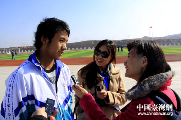 蘭州新區(qū)舟曲中學(xué)學(xué)生接受網(wǎng)絡(luò)媒體記者們的采訪。 (中國臺灣網(wǎng) 董憲超 攝)