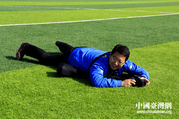 舟曲災(zāi)后重建蘭州新區(qū)轉(zhuǎn)移安置項(xiàng)目,圖為環(huán)球網(wǎng)記者王歡感受綠草如茵的足球場。 (中國臺灣網(wǎng) 董憲超 攝)