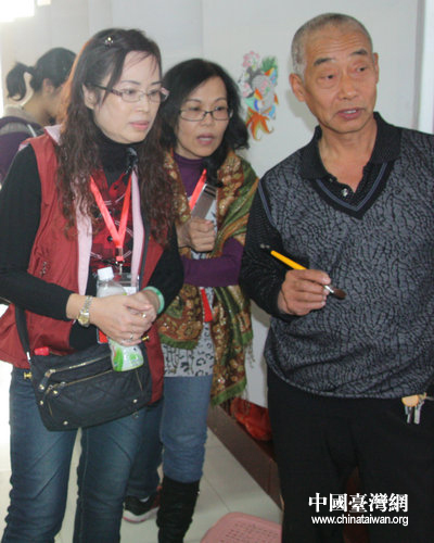 臺灣參訪團(tuán)觀看年畫制作過程。(中國臺灣網(wǎng) 郭瑩瑩 攝)