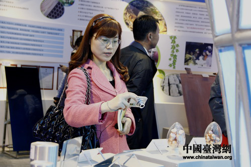 10月23日,“感知甘肅”第四屆網(wǎng)絡(luò)媒體采訪團參觀考察金昌市循環(huán)經(jīng)濟發(fā)展狀況。 圖為記者用相機記錄下循環(huán)經(jīng)濟成果展示臺的樣品。 (中國臺灣網(wǎng) 董憲超 攝)
