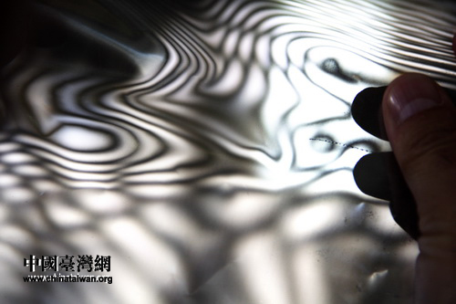 10月23日,“感知甘肅”第四屆網絡媒體采訪團參觀考察金昌市循環經濟發展狀況。 圖為宇恒鎳網公司生產的鎳網材料。 (中國臺灣網 董憲超 攝)