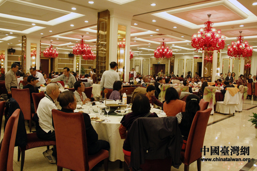 “2012年海峽兩岸炎帝神農文化祭”活動晚宴上,臺灣信眾共敘中華情 。(中國臺灣網 陳睿 攝)
