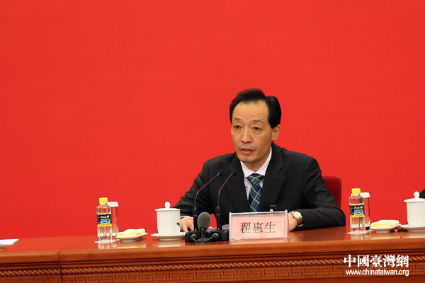 十八大新聞中心主任翟惠生主持新聞發(fā)布會。(中國臺灣網(wǎng) 王偉 攝)