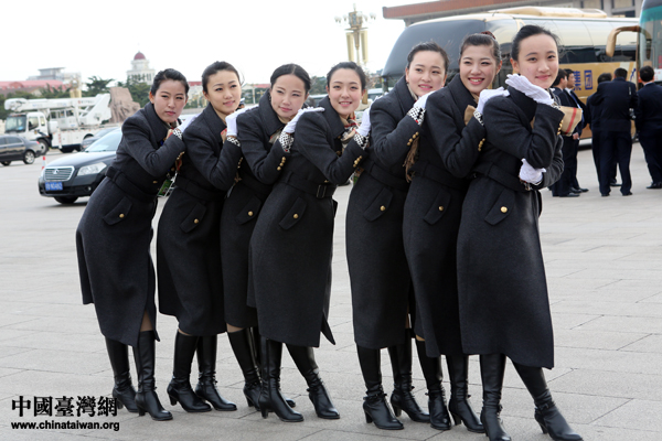 8日上午9時(shí),中國共產(chǎn)黨第十八次全國代表大會(huì)將在京開幕。為十八大服務(wù)的工作人員形成了人民大會(huì)堂前一道靚麗的風(fēng)景。(中國臺(tái)灣網(wǎng) 王偉 攝)