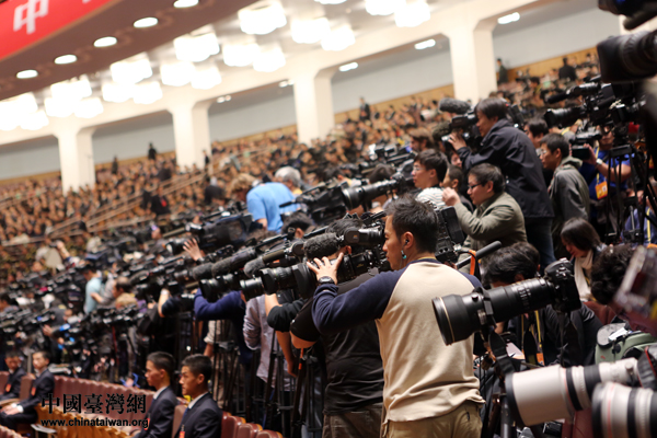 11月8日上午9時,中國共產黨第十八次全國代表大會在北京人民大會堂隆重開幕,圖為現場忙碌的媒體工作者。(中國臺灣網 王偉 攝)