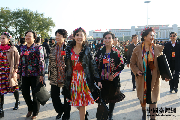 11月8日,中國共產黨第十八次全國代表大會在北京人民大會堂開幕。早上8時許,來自全國各地的代表抵達人民大會堂,這里再次成為世界矚目的焦點。圖為代表們步入人民大會堂。(中國臺灣網 王偉 攝)