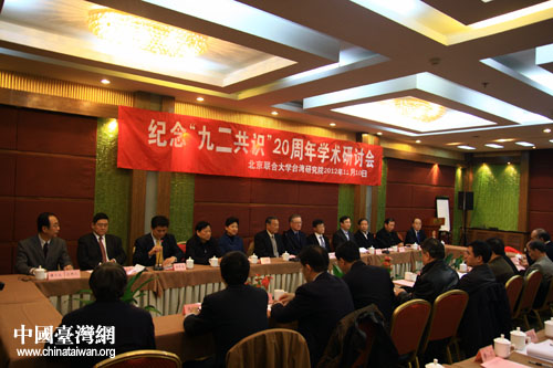 中國臺灣網(wǎng)11月10日北京消息 在“九二共識”達成20周年之際,北京聯(lián)合大學臺灣研究院11月10日在北京舉辦紀念“九二共識”20周年學術研討會,來自海峽兩岸的20余名專家學者圍繞“九二共識”的歷史作用與影響、如何深化和發(fā)展“九二共識”展開了深入研討。
