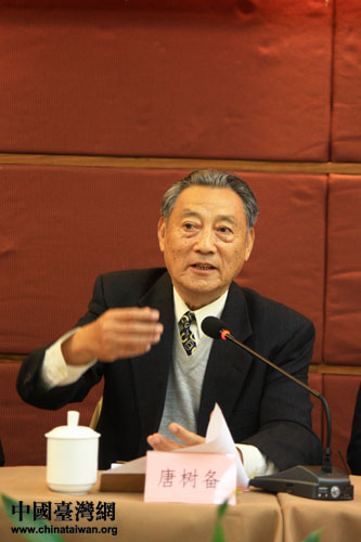 北京聯(lián)大臺研院名譽(yù)院長、原海協(xié)會常務(wù)副會長唐樹備在會上發(fā)言。(中國臺灣網(wǎng) 扶海濤 攝)