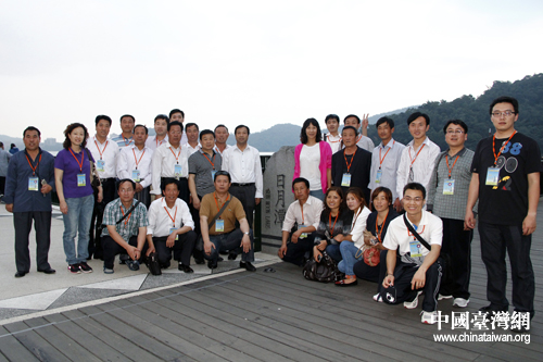 大陸基層農民代表參訪團游覽日月潭風景區并合影留念。(中國臺灣網 于斯文 攝)