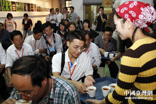 參訪團(tuán)品嘗臺(tái)灣“日月茶廠”知名紅茶。(中國(guó)臺(tái)灣網(wǎng) 于斯文 攝)
