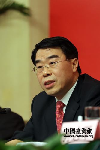 11月11日下午,十八大新聞中心在梅地亞中心二樓多功能廳舉辦中外記者招待會,介紹文化體制改革和公共文化服務體系建設情況,并回答記者提問。圖為新聞出版總署黨組書記、副署長、中央文化體制改革和發展工作領導小組辦公室副主任蔣建國回答記者提問。(中國臺灣網 王偉 攝)