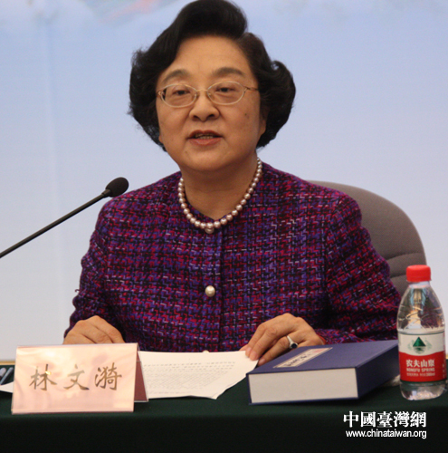 全國政協副主席、臺盟中央主席林文漪在紀念臺盟成立65周年座談會上發表講話。(中國臺灣網 王怡然 攝)