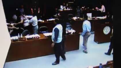 龍?zhí)多l(xiāng)代表會(huì)今日質(zhì)詢時(shí)上演全武行,多人掛彩。(圖片來(lái)自臺(tái)媒)