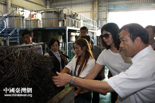 參訪團成員參觀仙草加工流程。(中國臺灣網 于斯文 攝)