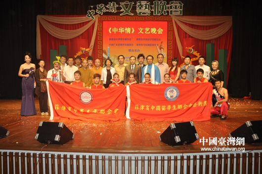 中國駐菲律賓大使館文化處主任周旭,菲律賓中華青年聯合會、菲律賓中國留學生聯合會主席易昌良等嘉賓與菲律賓中華青年聯合會、菲律賓中國留學生聯合會學生合影。(中國臺灣網 發)