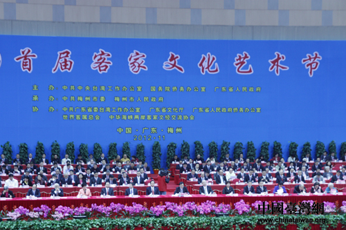 中國臺(tái)灣網(wǎng)11月24日廣東梅州消息 由中共中央臺(tái)灣工作辦公室、國務(wù)院僑務(wù)辦公室、廣東省人民政府共同主辦,梅州市委、市政府承辦的首屆客家文化藝術(shù)節(jié),23日上午在梅州市隆重開幕。廣東省省長朱小丹、中國國民黨榮譽(yù)主席吳伯雄、海協(xié)會(huì)會(huì)長陳云林等,與來自海內(nèi)外的2000多名客家鄉(xiāng)親及梅州市群眾代表共7000多人出席開幕式。
