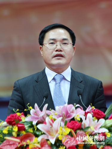 首屆客家文化藝術(shù)節(jié)23日在梅州開幕,圖為朱澤君致辭(中國臺(tái)灣網(wǎng)發(fā) 高訊 攝)