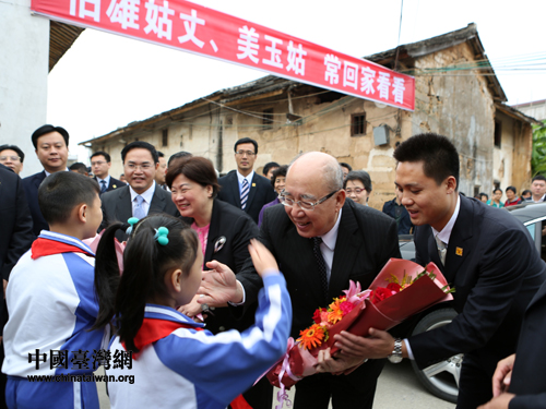 吳伯雄與夫人戴美玉回家鄉蕉嶺縣祭祖受到鄉親們的熱烈歡迎(中國臺灣網發 高訊 攝)
