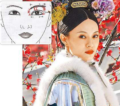 飾演甄嬛的孫儷(右圖)擁有電眼,成為整形范本。醫(yī)師建議眉、眼距離比例,自眼頭至眼尾為2比1比3(上圖)。圖片來自臺媒