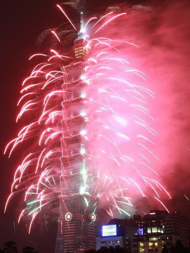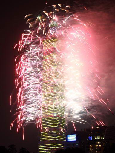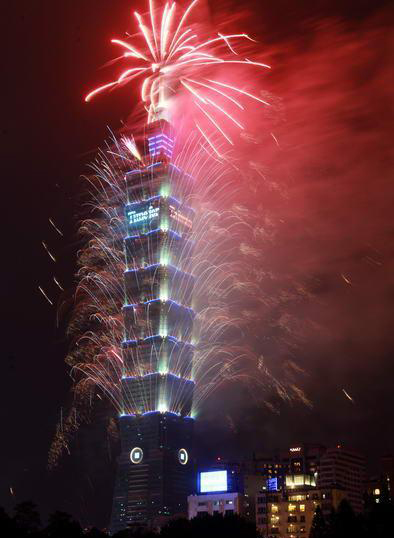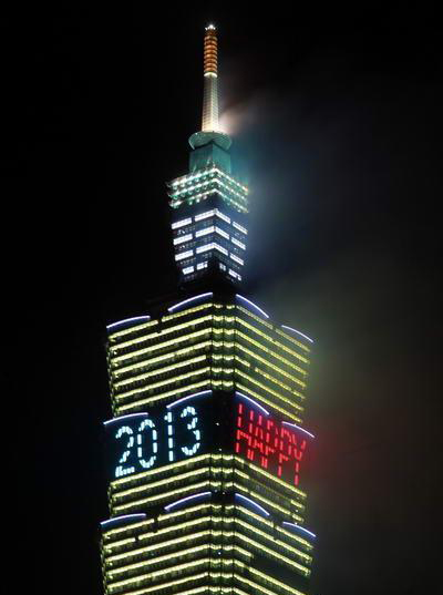 和去年一樣長達188秒的2013臺北101跨年煙火秀精彩登場,估計有85萬人到場觀賞。圖片來自臺灣今日新聞網