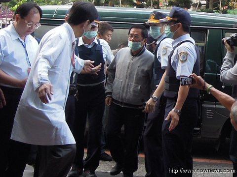 2012年5月23日清晨,陳水扁由警方戒護抵達長庚醫院就醫。(圖片來源:臺灣今日新聞網)