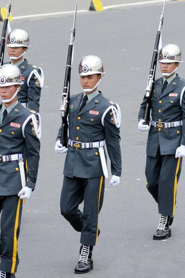明道以陸軍儀仗隊士兵身份,現(xiàn)身在臺灣的“雙十節(jié)”慶典上(圖片來源:臺灣媒體)
