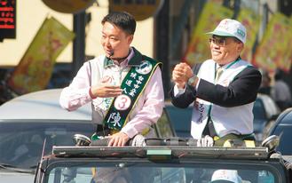民進(jìn)黨主席蘇貞昌(右)昨天專程南下到臺中烏日區(qū),陪同“立委”候選人陳世凱(左)拜票。圖自臺灣《聯(lián)合報(bào)》