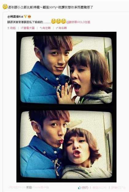 24日柯震東就在微博發(fā)了和Hold住姐正常版的合照。圖自臺(tái)媒