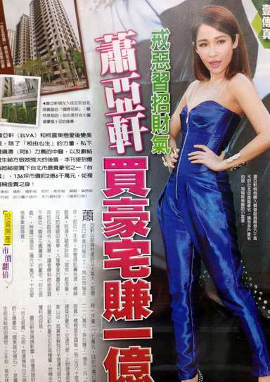 對此蕭亞軒經紀人表示,房子是蕭媽媽生前就已買好,去年11月過戶,沒賺這么多。(中國臺灣網 黃艷艷)